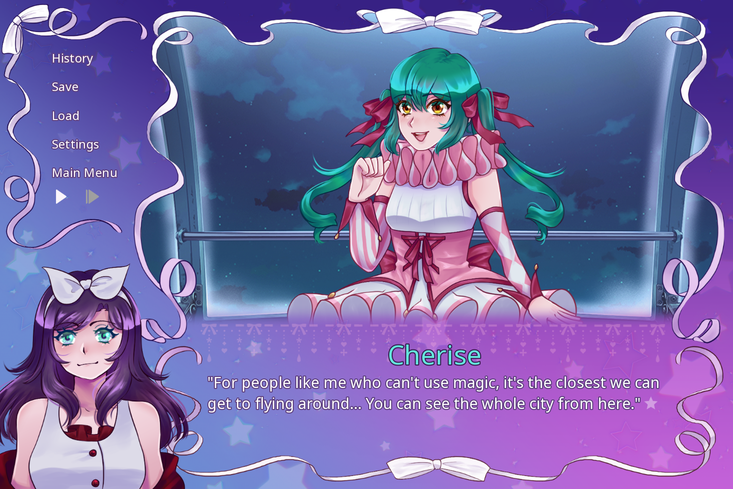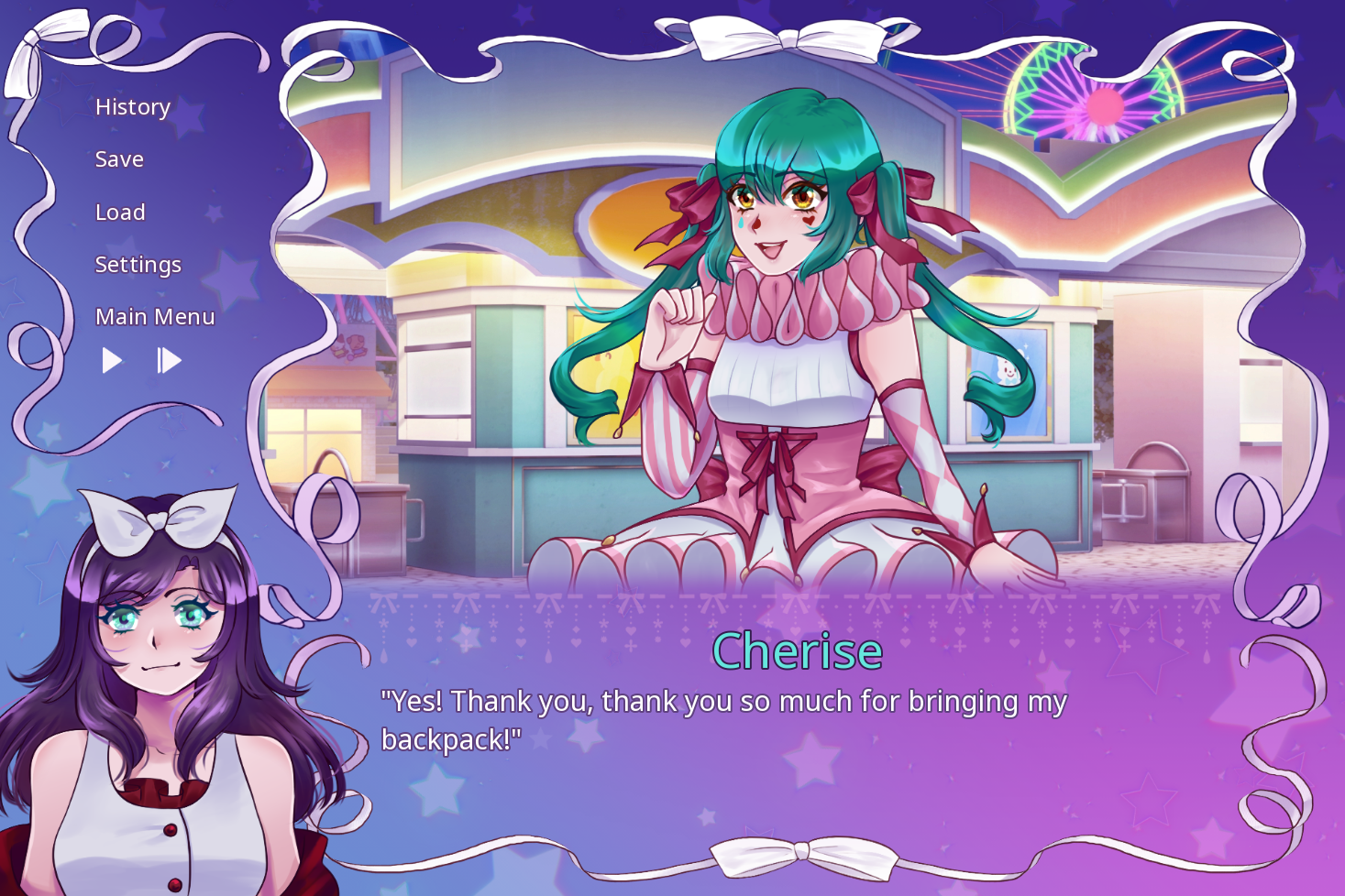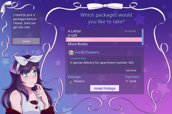 This was a short, semi-experimental proof of concept for Ludum Dare 53, an annual game jam where the theme was "delivery" as well as for the annual Otome Jam. It's now been finalized into a full game with point-and-click mechanics, lots of side characters to meet, and more!