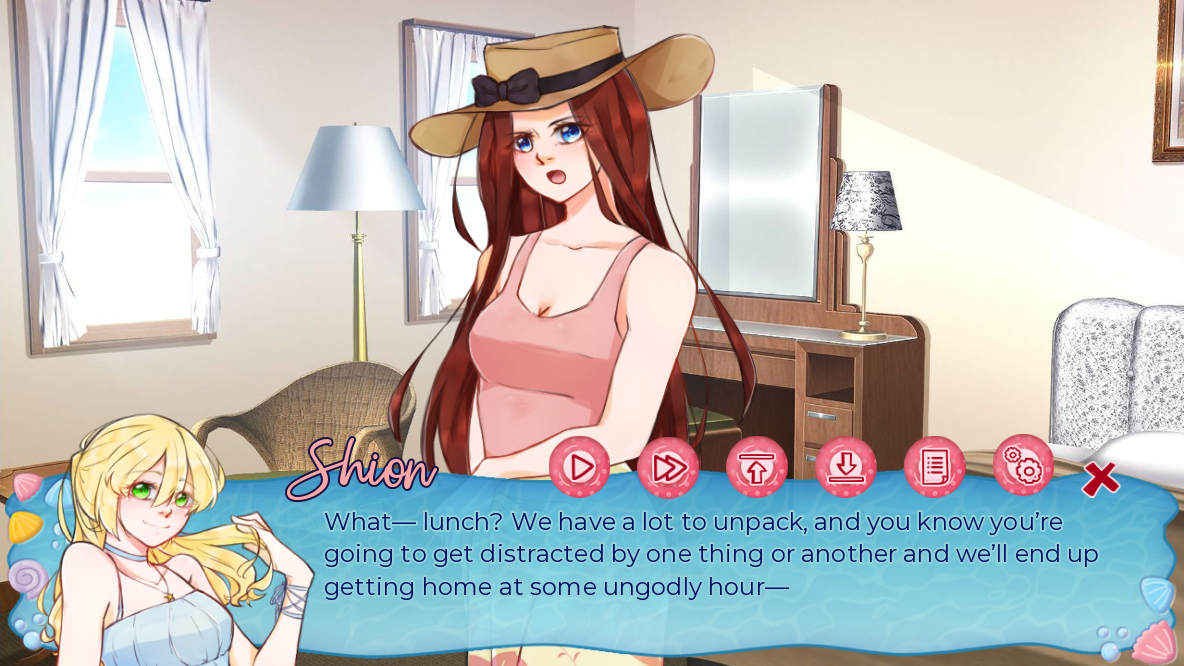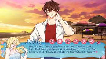 Memories on the Shoreline is a commercial otome featuring Melody (the blonde) on her vacation of a lifetime where she meets two (very cute!) bachelors while at the beach. Brennan, the cheeky lady's man who's a bit overprotective, and Crylis, the fugitive merman who's hides behind a lot of snark.